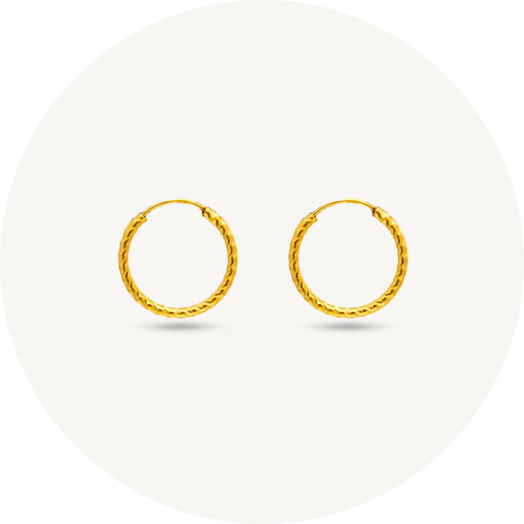 916/22K Gold Plain Textured Hoop Earring Elegold