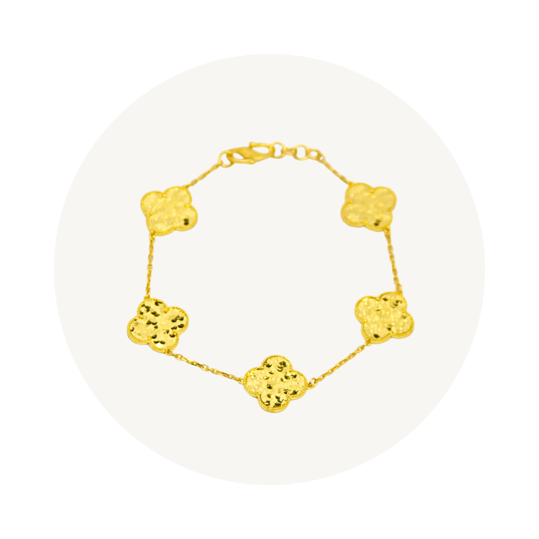 Elegold 916G Shiny Butterfly Clover Paperclip Solid Dangling Bracelet Rantai Tangan - 20U7P