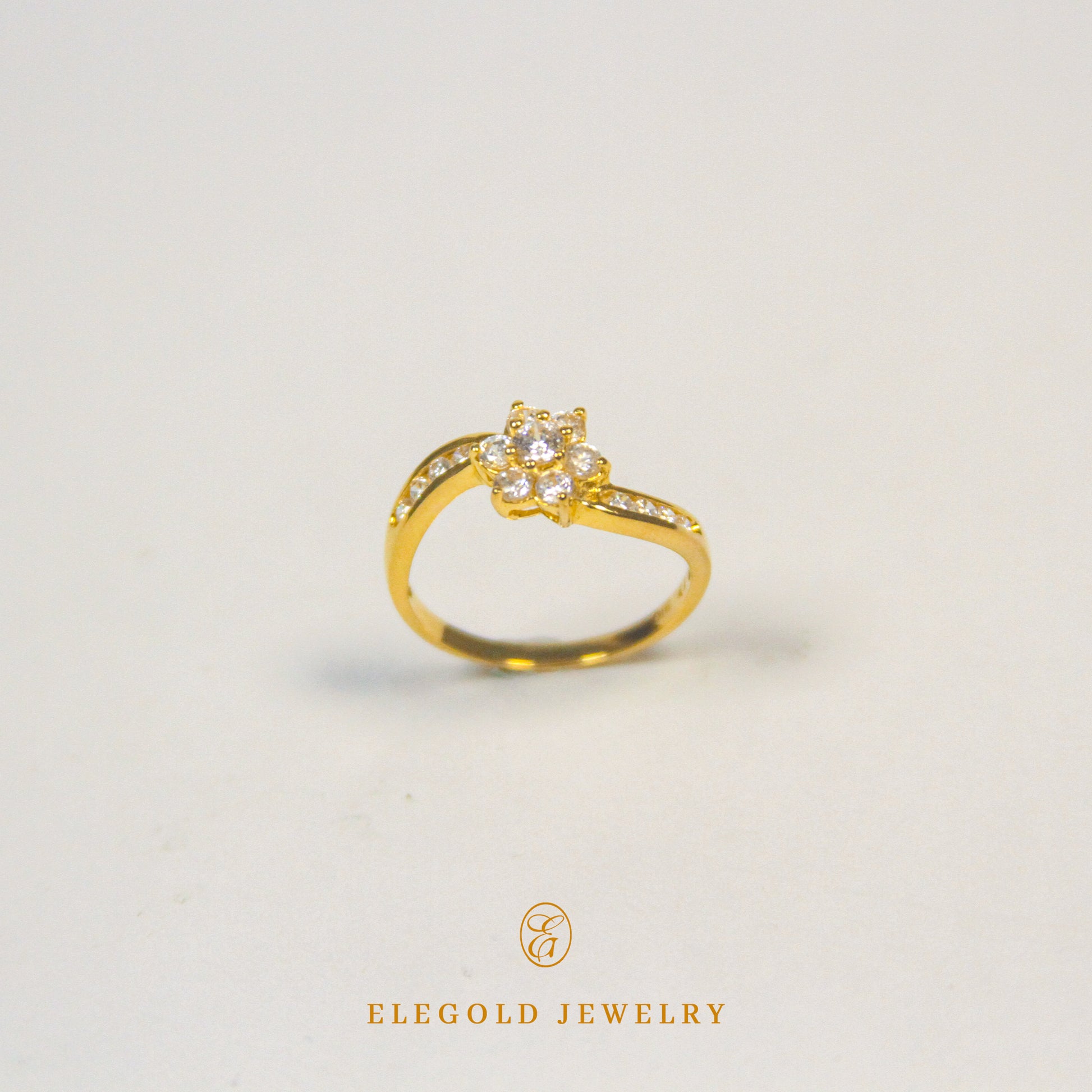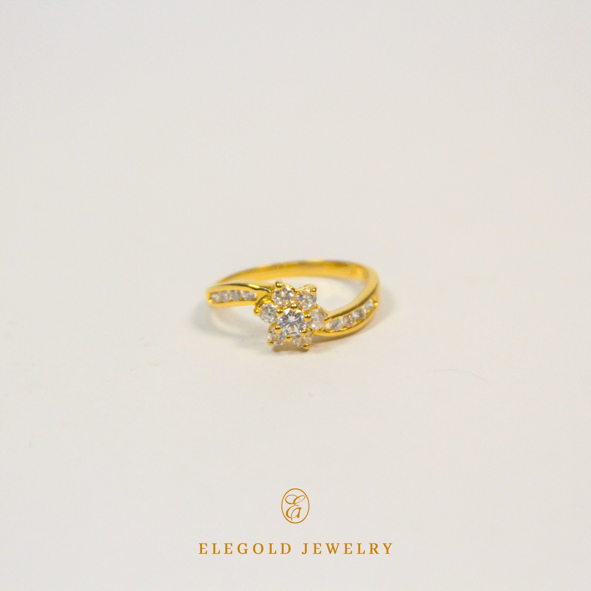 Elegold Blooming Flower CZ Side Stone Gold Ring - 206ys