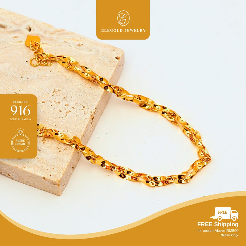 Elegold 916G Plain Wave Fashion Bracelet Rantai Tangan - 20U7H