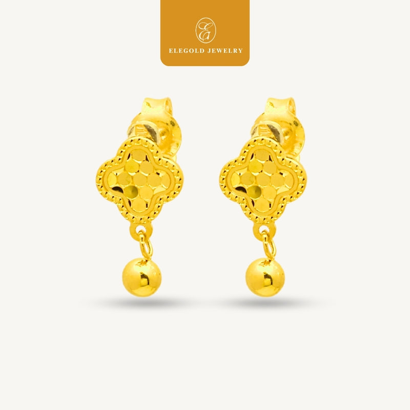 Elegold 916G Clover shattered ice Earring Subang Anting-Anting - 20U2M