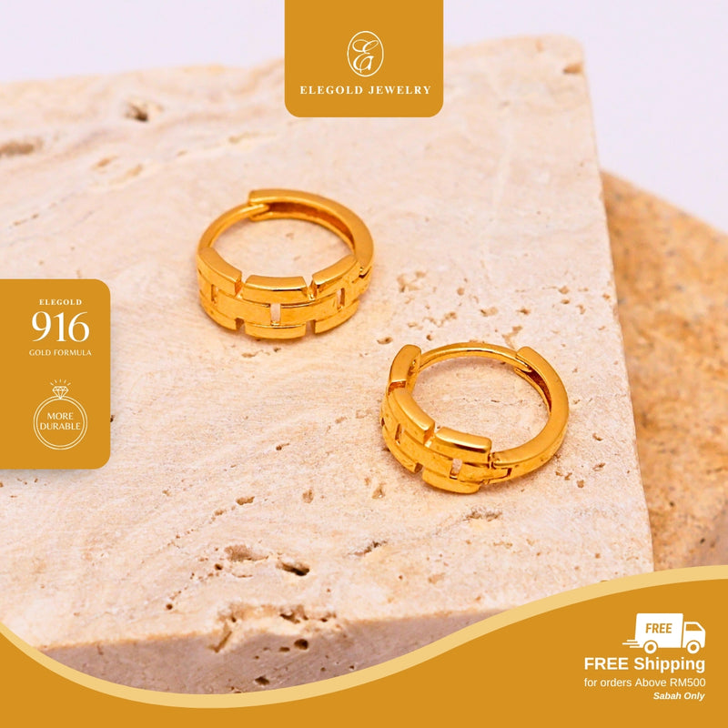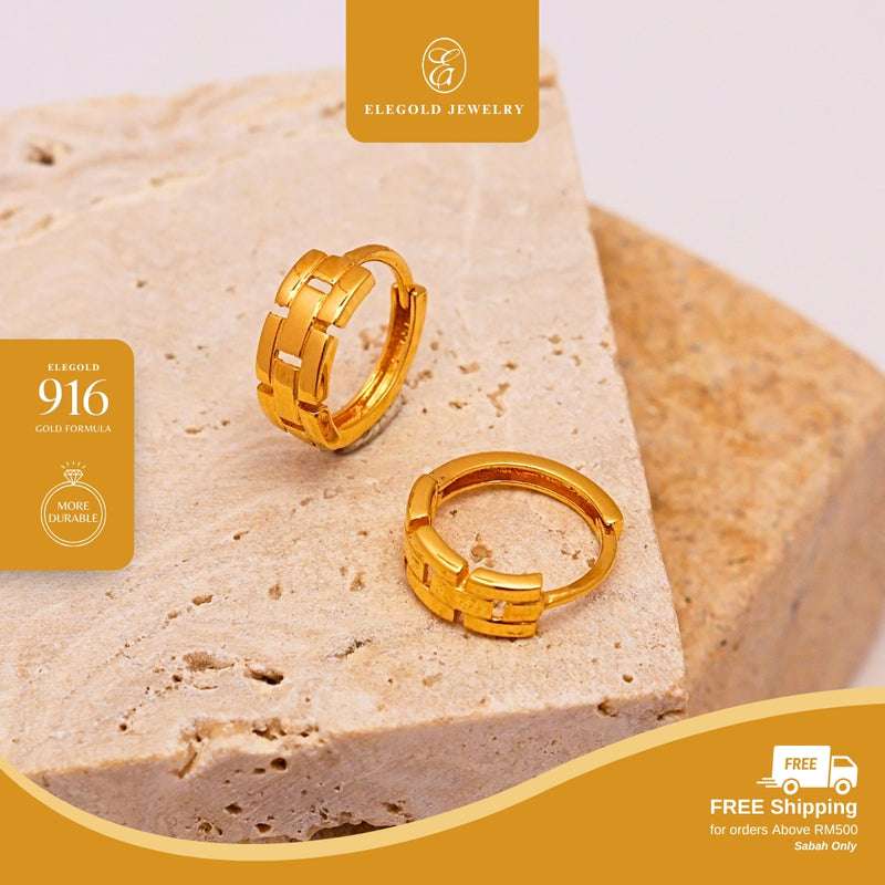 Elegold 916G Hardware Plain Solid Clip Earring Subang Anting-Anting - 20U93