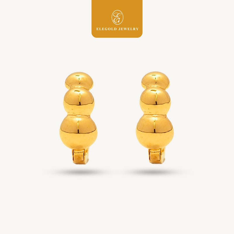 Elegold 916G Minimalist Solid Beads Plain Fashion Clip Earring Subang Anting-Anting - 20U99
