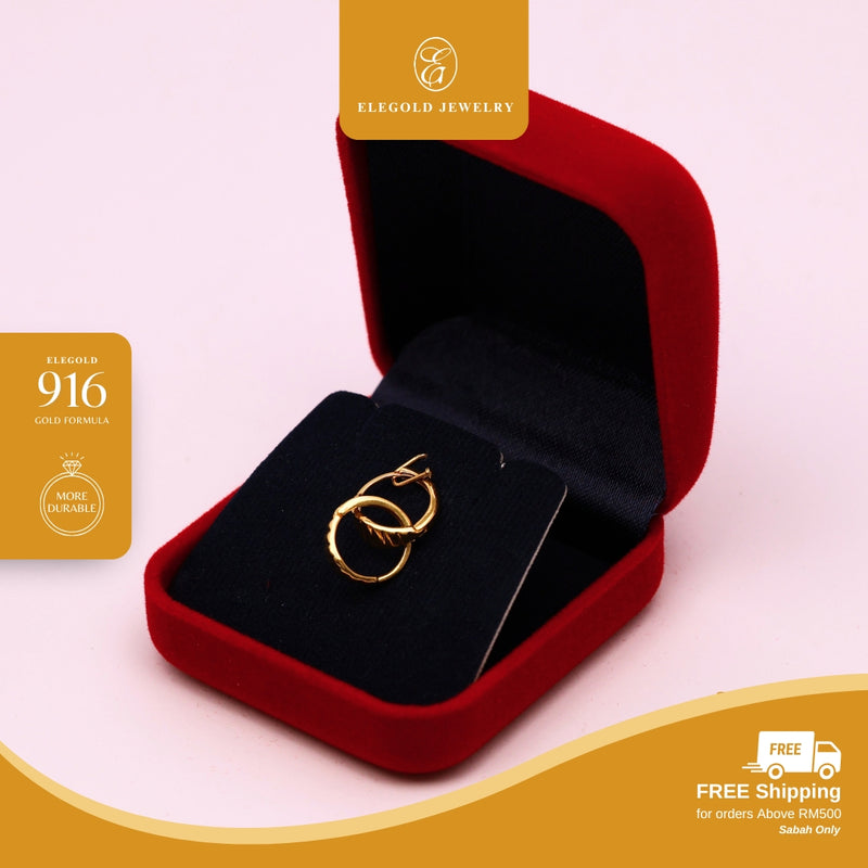 Elegold 916G Plain Half Circle Clip Earring Subang Anting-Anting - 20U8V