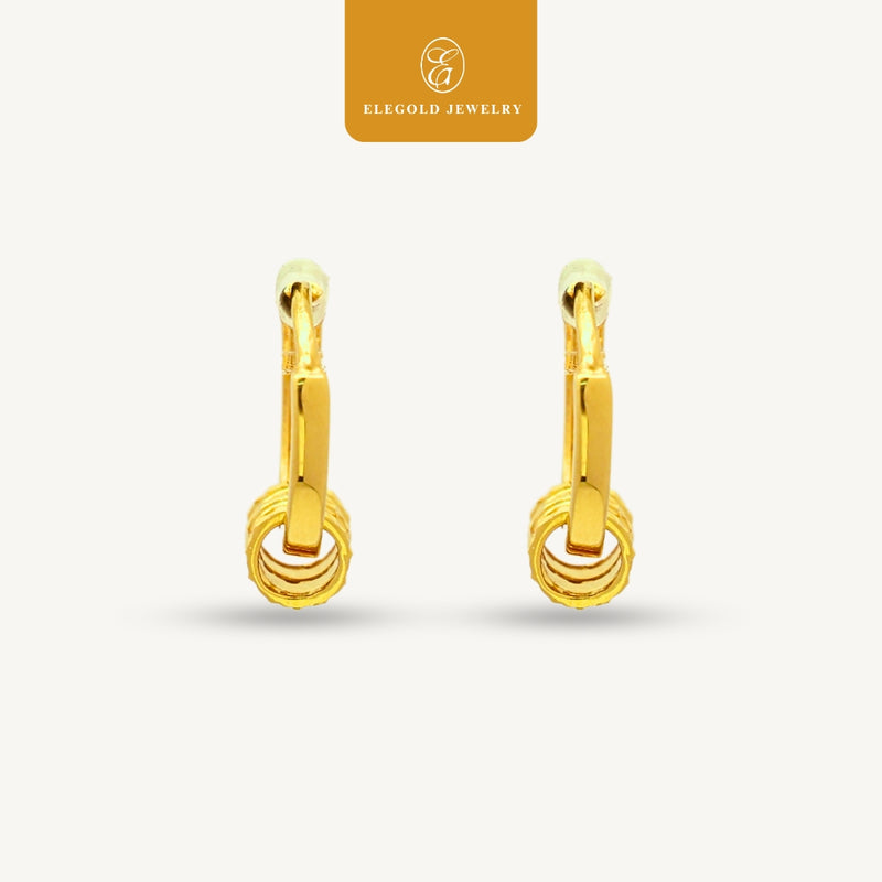 Elegold 916G Shiny Roller Plain Hoop Earring Subang Anting-Anting - 20U9Q