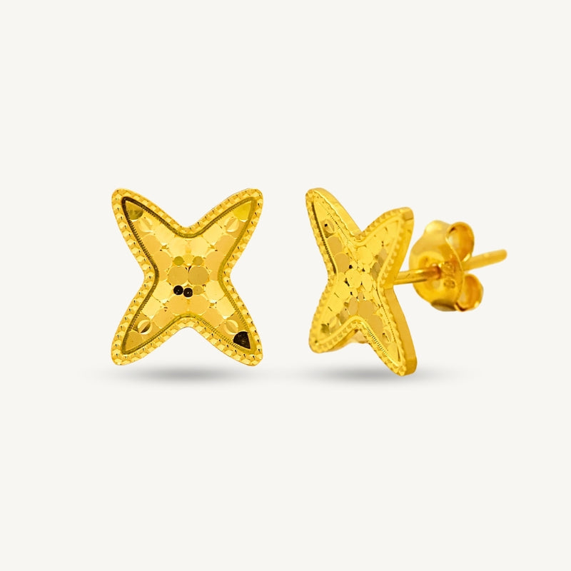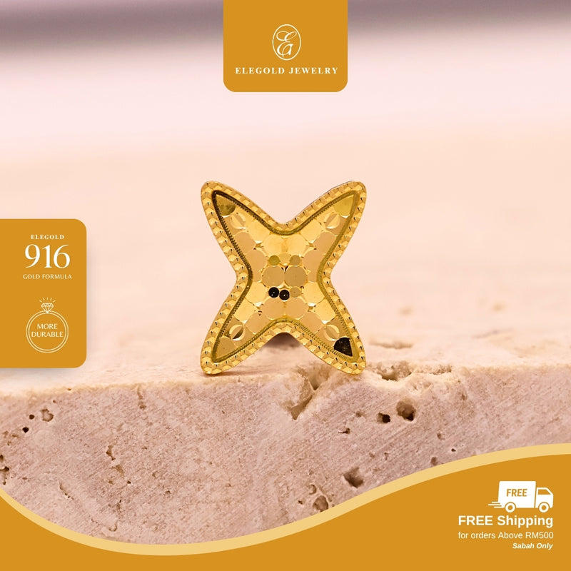 Elegold 916G Star Bold Shattered Ice Earring Subang Anting-Anting - 20U2S
