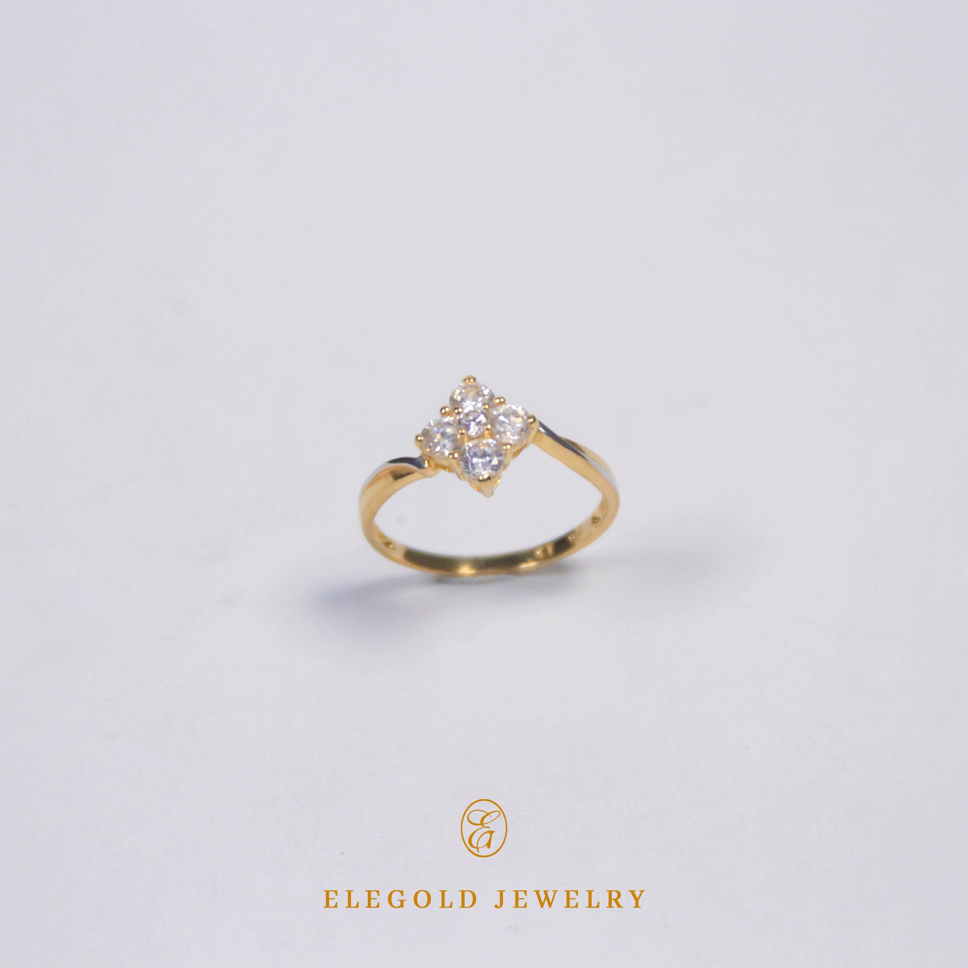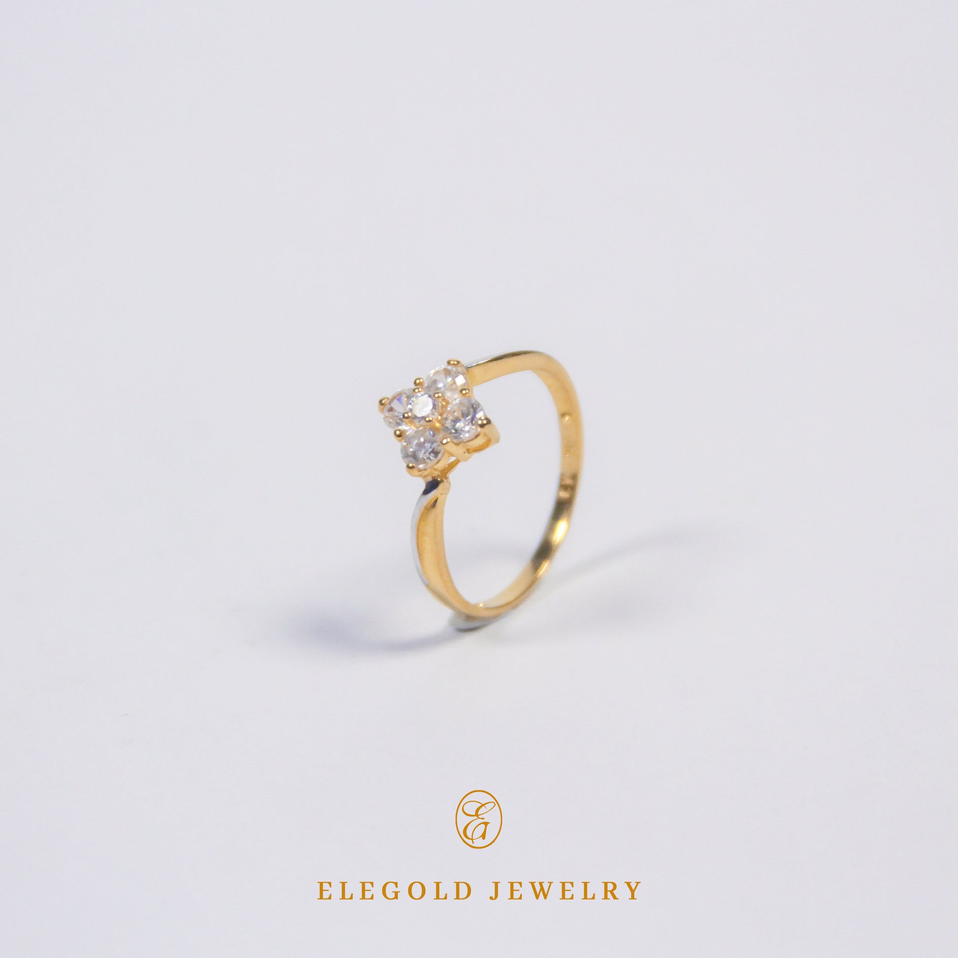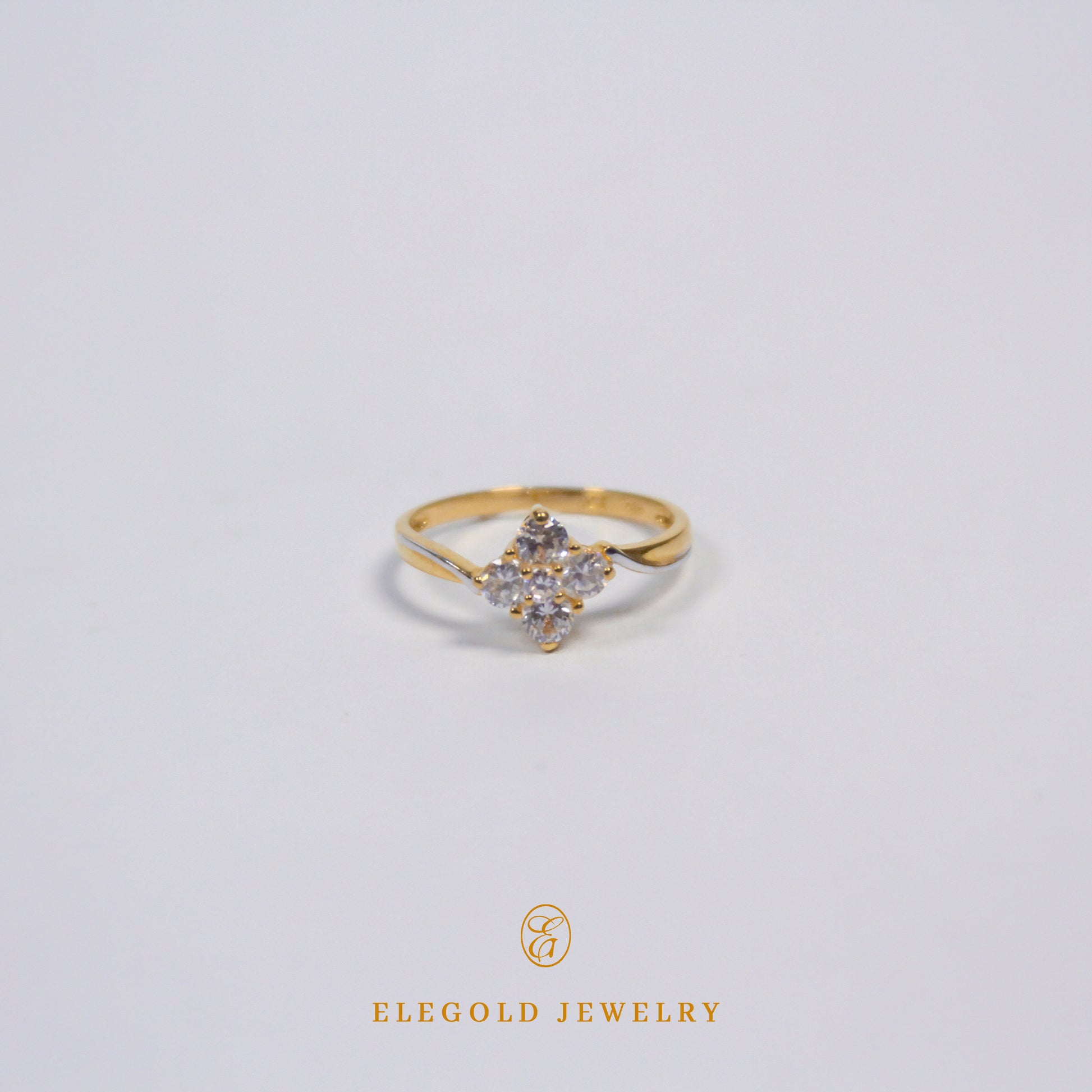 Elegold Cluster Flower Twist CZ Stone Gold Ring