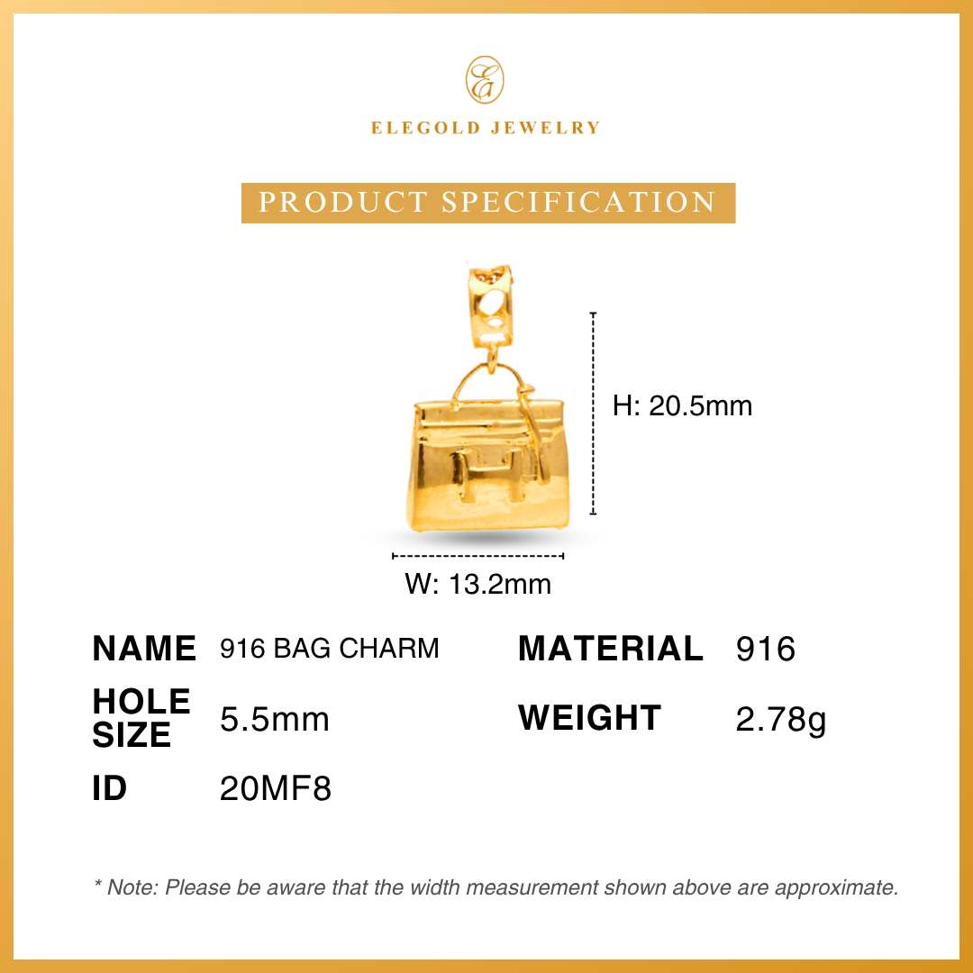 916/22K Gold Hallow Bag Pouch Series Pendant Elegold