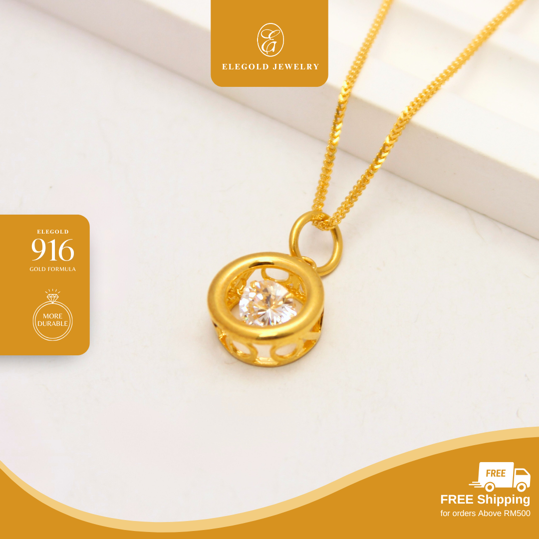 916/22K Gold Round Plain Circle CZ Stone Pendant Elegold