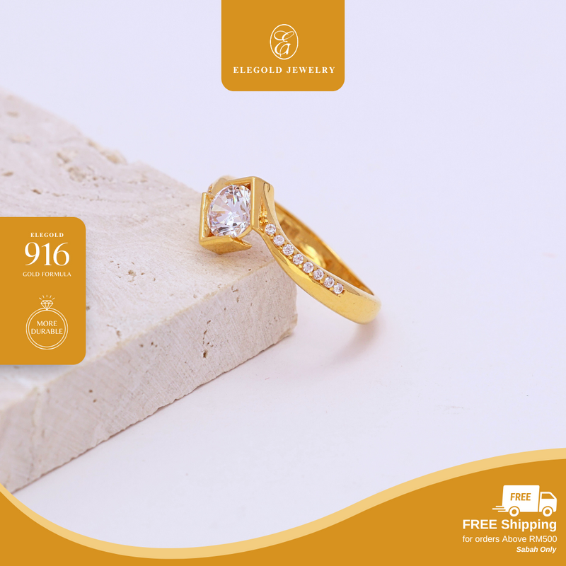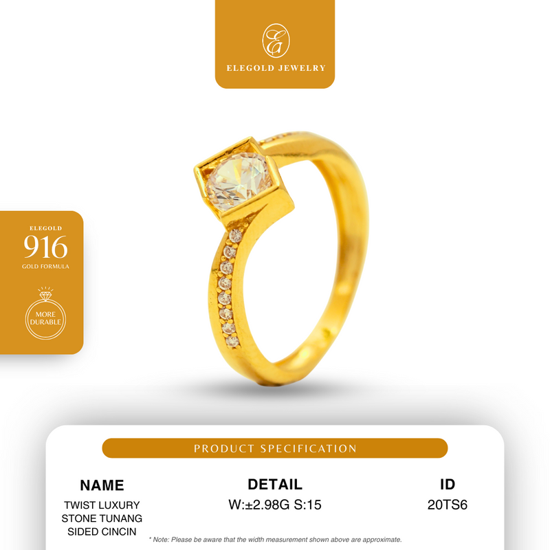 916G Twist Luxury Stone Tunang Sided Cincin Ring Elegold - 20TS6