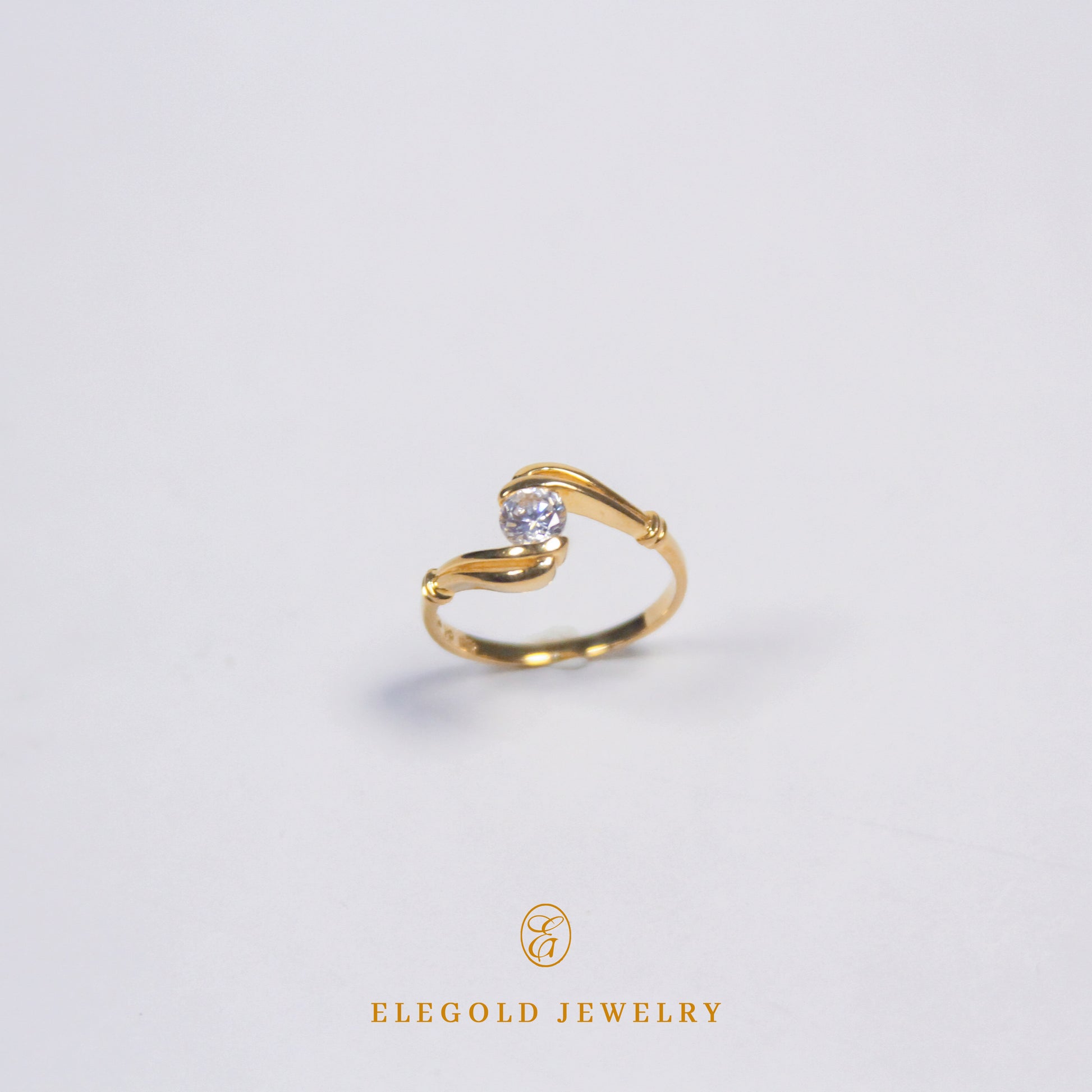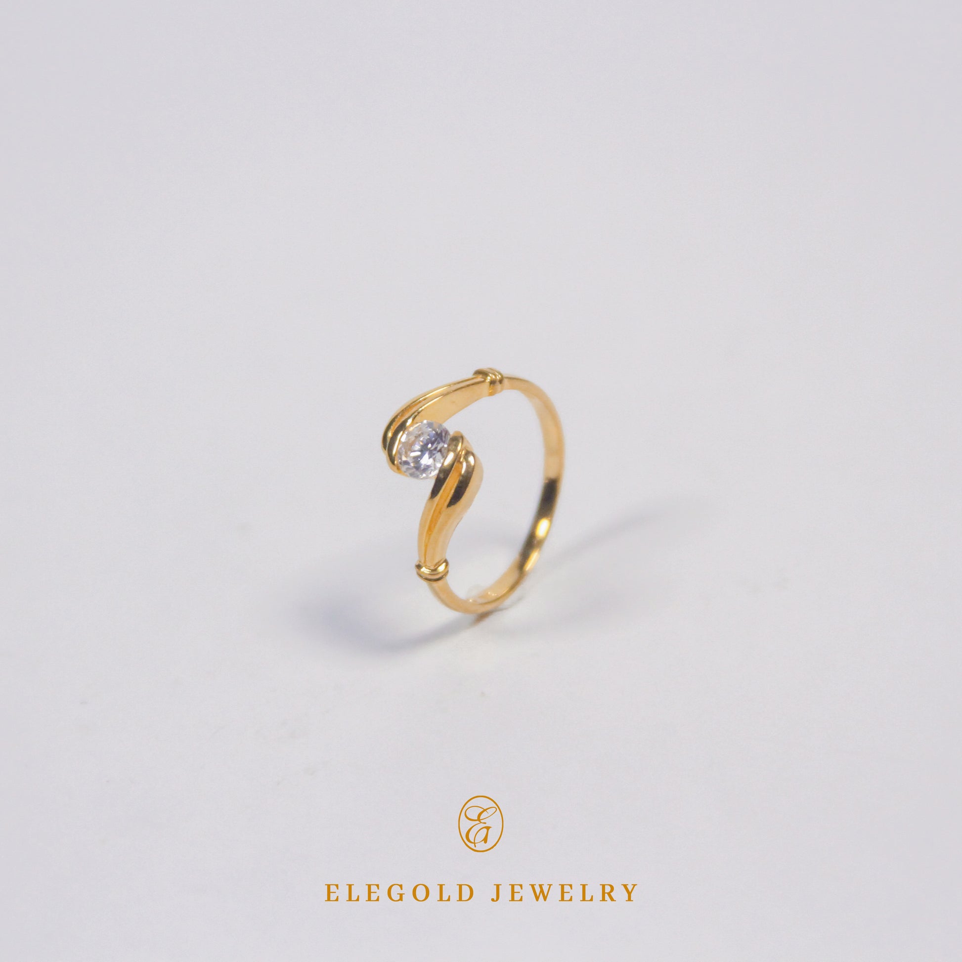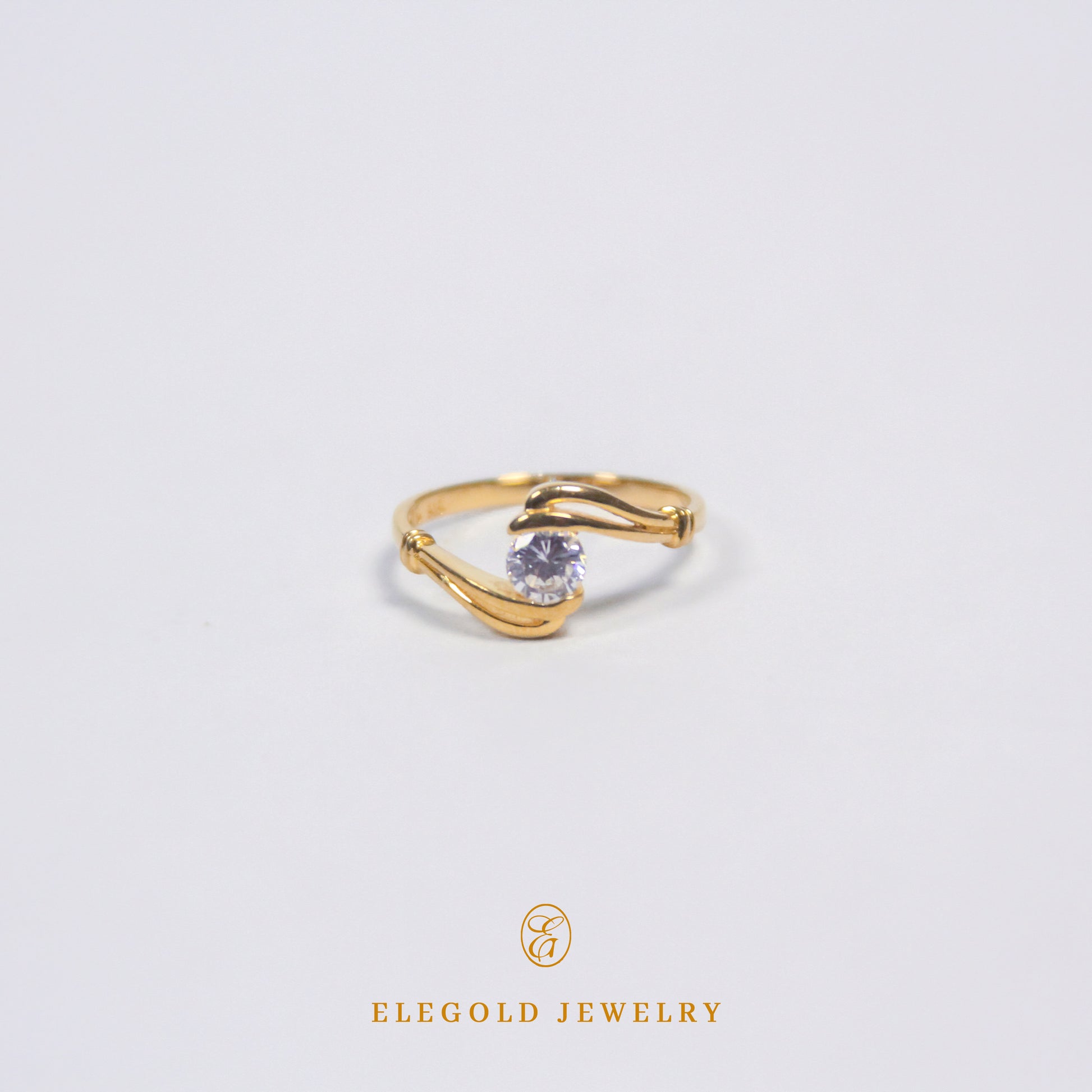 Elegold Vintage Solitaire CZ Stone Ring